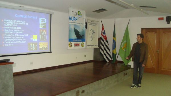 Empreendedorismo, legislação, aspectos contáveis e responsabilidade social estiveram entre os temas apresentados no curso. A oitava aula do curso “Surf: Administração, Marketing e Gestão de Negócios”, realizado pelo IBRASURF (Instituto Brasileiro de Surf) na USP contou com a participação do esportista e diretor financeiro da CONTÁBIL SUMARÉ (especializada no atendimento a atletas) Rogerio Rodrigues e também de Robson Careca, responsável pelo Projeto Social Mão na Borda, que oferece surf adaptado a pessoas com deficiência física e/ou psicomotora.